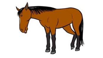 The horse is standing with a relaxed, long and low head, neck and body posture, resting one hind leg, ears held low and pointing sideways, eyes open, half-closed or closed, muzzle relaxed with oval nostrils, the lower lip may be hanging low. The horse is dozing or resting and may be startled if you approach suddenly.